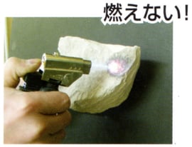 珪藻土の塊に、約1,300℃のバーナーの炎を長時間当てても、黒変するだけで燃えません。