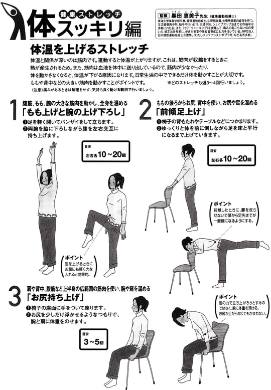 心臓への負担を軽くして、死亡事故や心筋梗塞、脳血管障害につながりかねないヒートショック症状を和らげる方法を下記に列挙してみました。